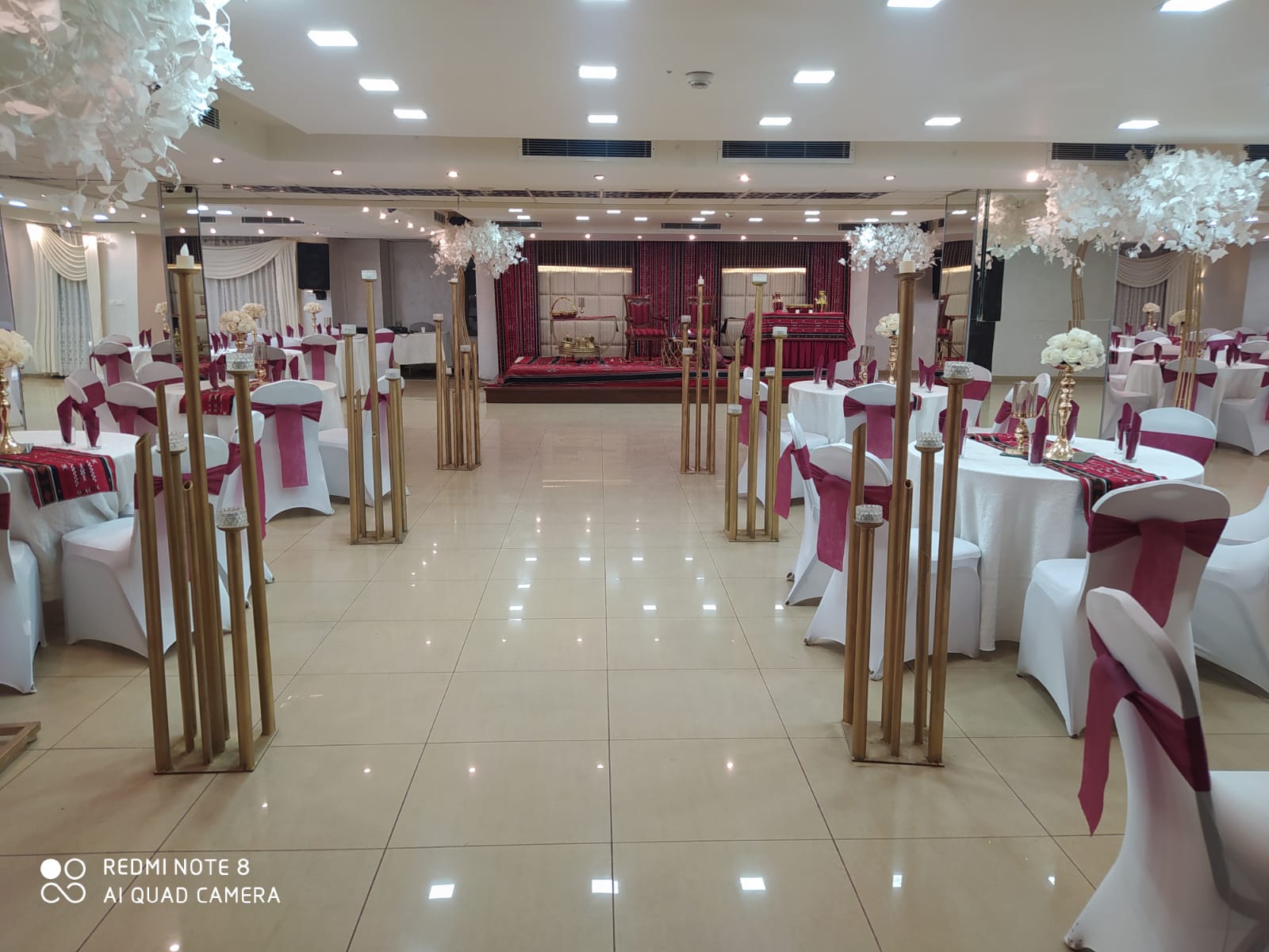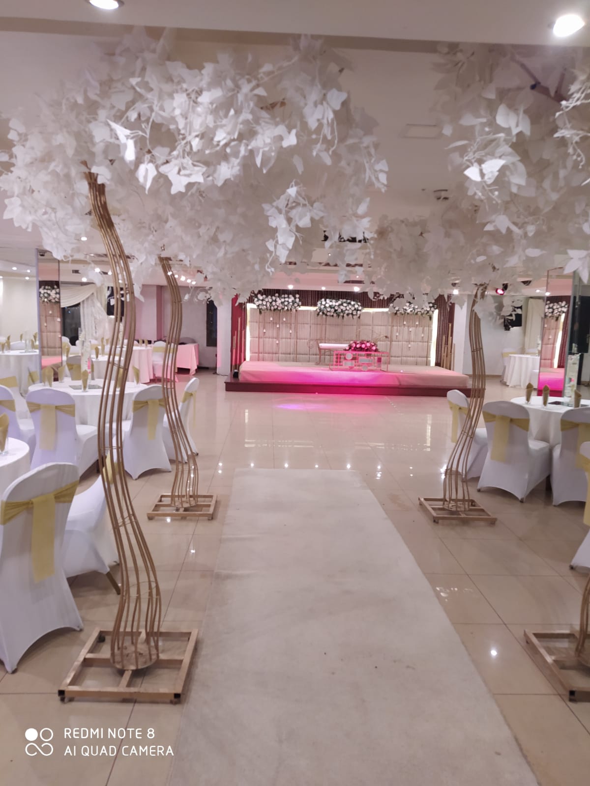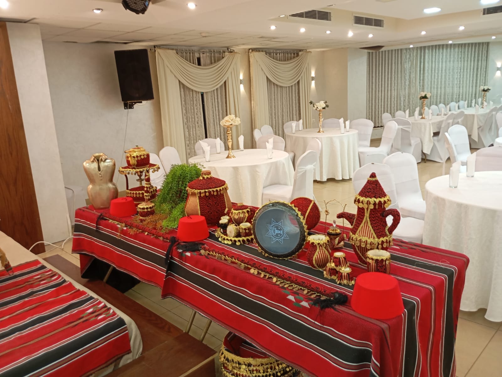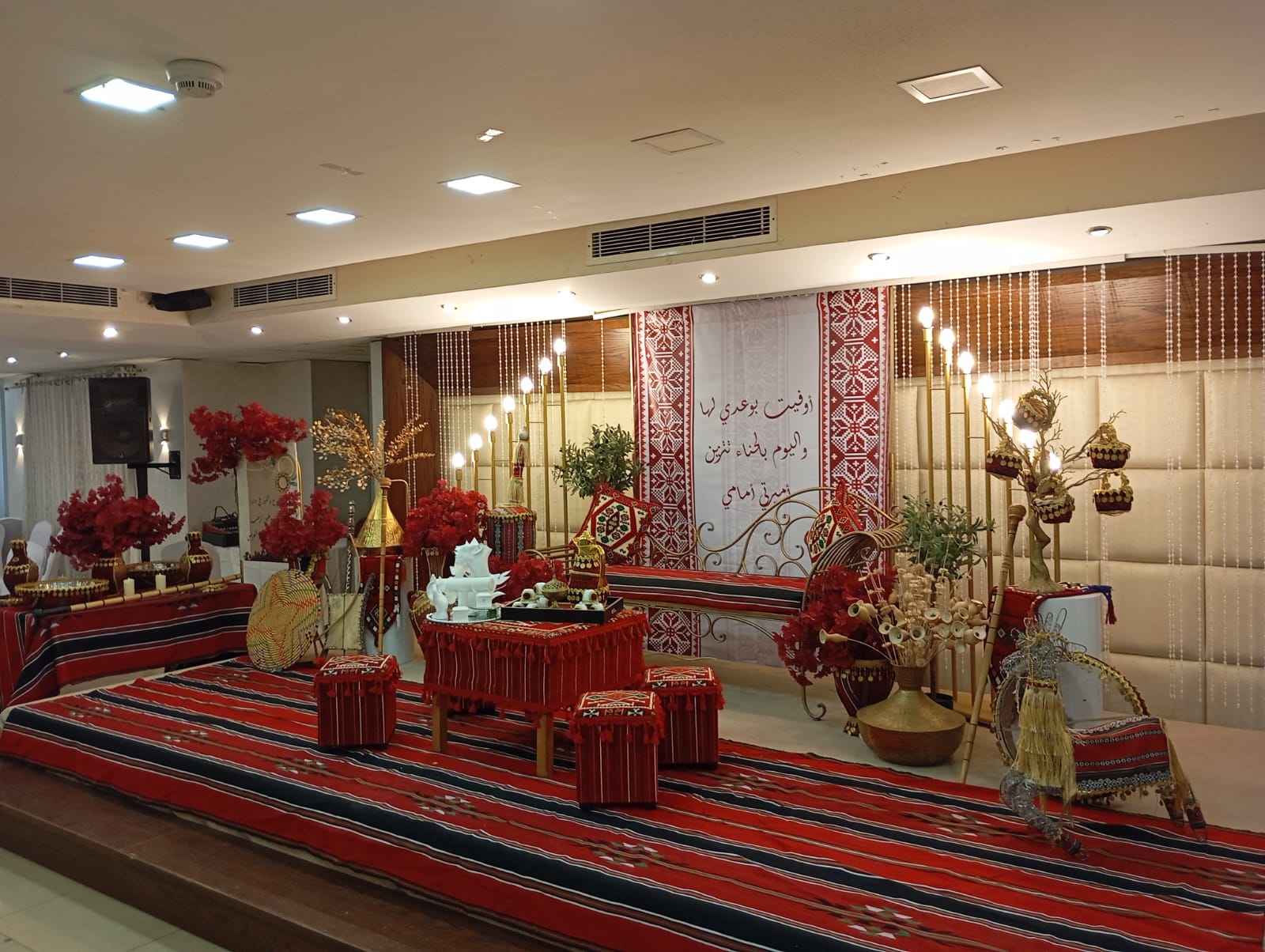 الترحيب والاستقال • عند الوصول الى الفندق يتم استقبال العروسين والضيوف في منطقة الاستقبال • فريق تنسيق الحفلات يوفر استشارات حول تصميم قاعة الفرح بما في ذلك اختيار الالوان والديكور والترتيبات الخاصة • قاعات الافراح داخل الفندق تتميز بتصميمات انيقة وعصرية مزودة بأنظمة اضاءة حديثة واسطوانات صوتية عالية الجودة • تتميز القاعات بإطلالات رائعة مع مساحة واسعة تناسب كافة الاعداد مع حفلات الزفاف الصغيرة الى الكبيرة كافة • الفندق يوفر خدمات متميزة من خلال فرق تنظيم الحفل التي تشرف على التنسيق توفر القاعة مكانا مخصصا للزفة او رقص العروسين مع تجهيزات كاملة متكاملة