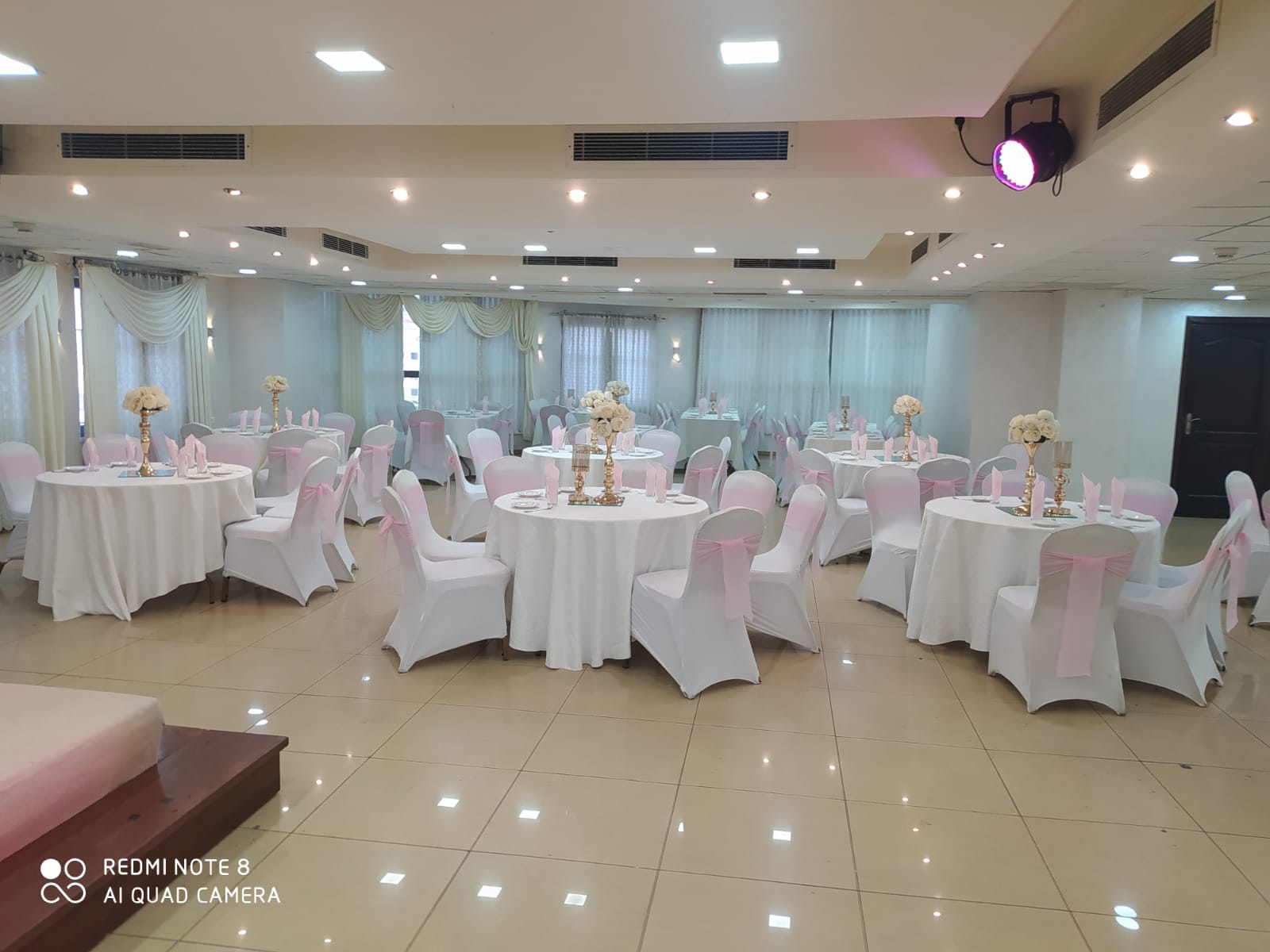 الترحيب والاستقال • عند الوصول الى الفندق يتم استقبال العروسين والضيوف في منطقة الاستقبال • فريق تنسيق الحفلات يوفر استشارات حول تصميم قاعة الفرح بما في ذلك اختيار الالوان والديكور والترتيبات الخاصة • قاعات الافراح داخل الفندق تتميز بتصميمات انيقة وعصرية مزودة بأنظمة اضاءة حديثة واسطوانات صوتية عالية الجودة • تتميز القاعات بإطلالات رائعة مع مساحة واسعة تناسب كافة الاعداد مع حفلات الزفاف الصغيرة الى الكبيرة كافة • الفندق يوفر خدمات متميزة من خلال فرق تنظيم الحفل التي تشرف على التنسيق توفر القاعة مكانا مخصصا للزفة او رقص العروسين مع تجهيزات كاملة متكاملة
